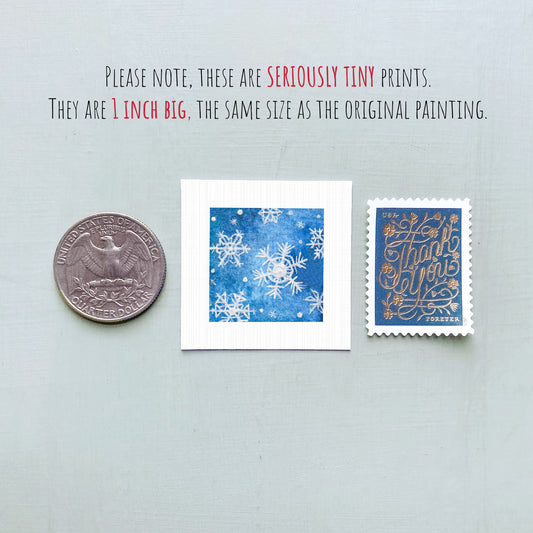 Miniature Winter Snowflakes Art PRINT - Tiny 1-Inch Mini Wall Decor