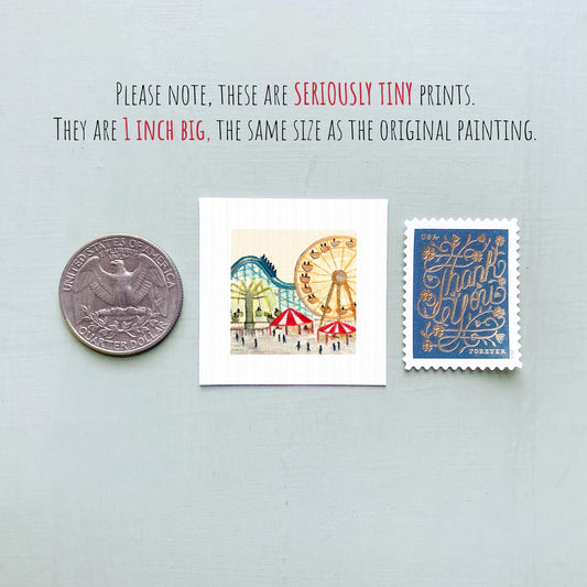 Miniature Carnival Theme Park Art PRINT - Tiny 1-Inch Mini Wall Decor