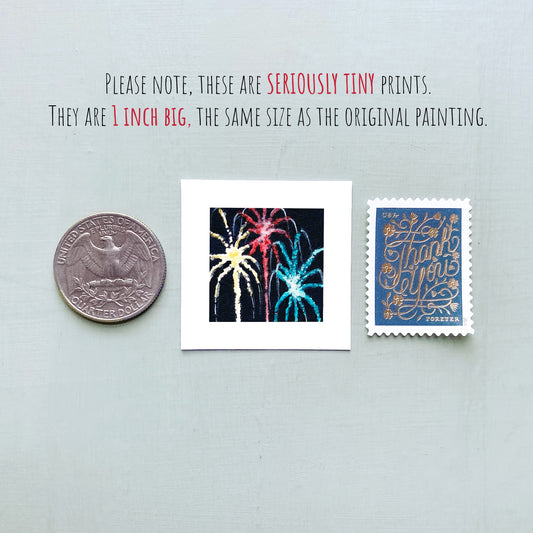 Mini 1" Fireworks 4th of July Tiny Watercolor Print