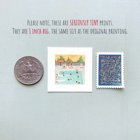 Miniature Swimming Pool Art PRINT - Tiny 1-Inch Mini Wall Decor