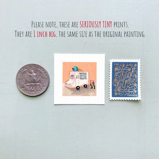 Miniature Ice Cream Truck Art PRINT - Tiny 1-Inch Mini Wall Decor