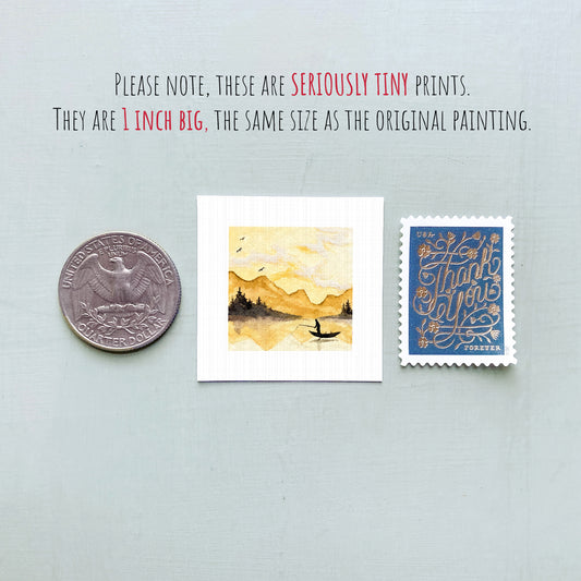 Miniature Fishing Lake Day Tiny Art PRINT - Tiny 1-Inch Mini Wall Decor