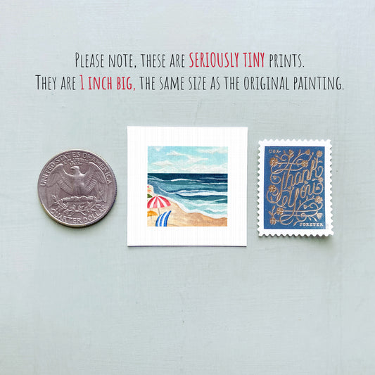 Miniature Beach Umbrellas Tiny Art PRINT - Tiny 1-Inch Mini Wall Decor