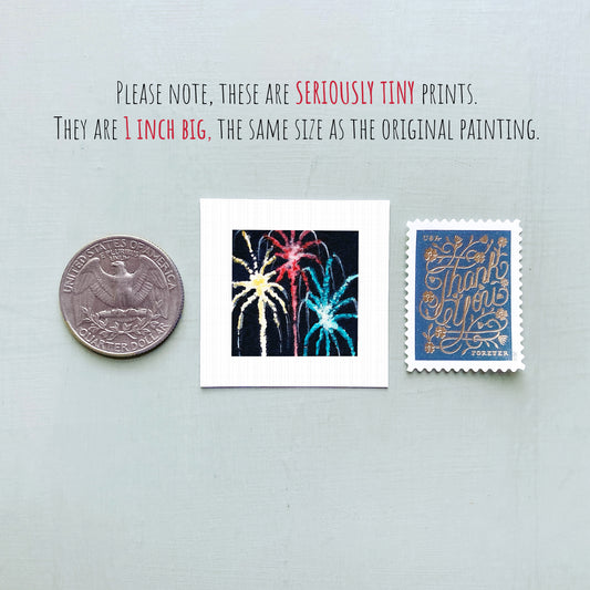 Miniature Fireworks 4th of July Tiny Art PRINT - Tiny 1-Inch Mini Wall Decor
