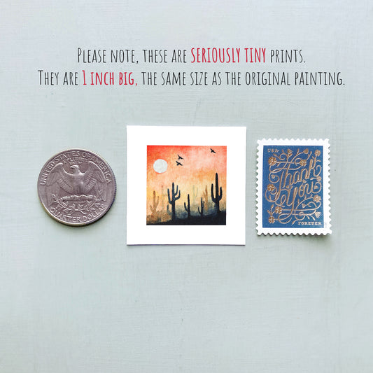 Mini 1" Desert Cactus #1 Watercolor Print