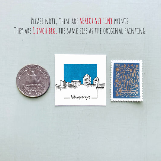 Mini Albuquerque, New Mexico Skyline 1.5" Watercolor and Ink Art PRINT