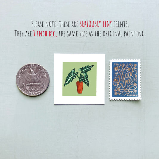 Mini 1" Alocasia Houseplant, African Mask Watercolor Print
