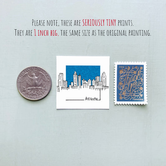 Mini Atlanta, Georgia Skyline 1.5" Watercolor and Ink Art PRINT