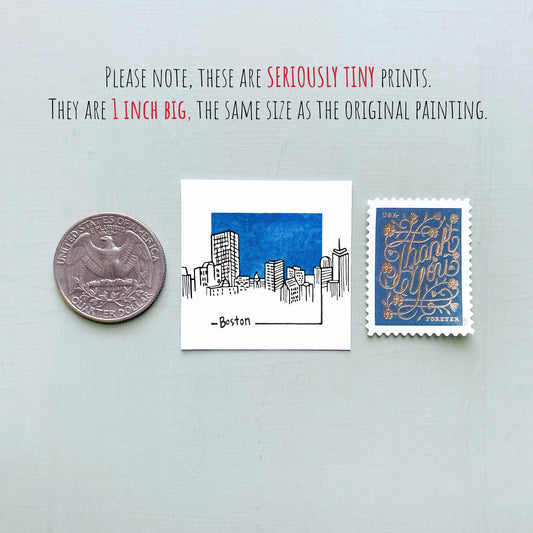 Mini Boston, Massachusetts Skyline 1.5" Watercolor and Ink Art PRINT