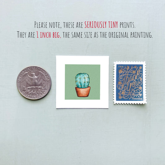 Mini 1" Cactus Houseplant Watercolor Print