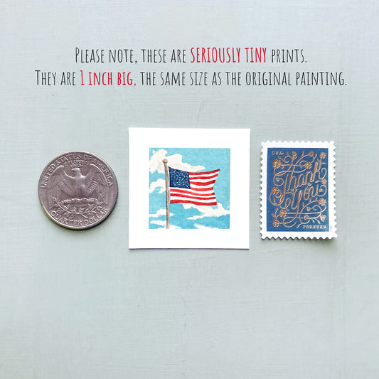Mini 1" American Flag Tiny Watercolor Print