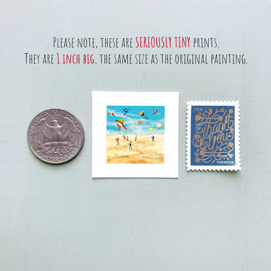 Mini 1" Flying Kites on the Beach Watercolor Print