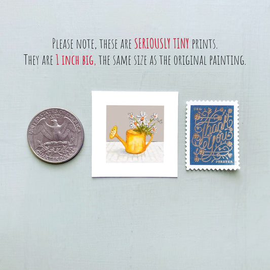 Mini 1" Daisy Watering Can Watercolor Print