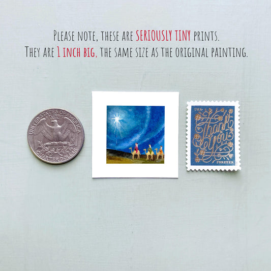 Mini 1" Wise Men Camels Nativity Christmas Winter Holiday Ornament Print Tiny Watercolor Art PRINT