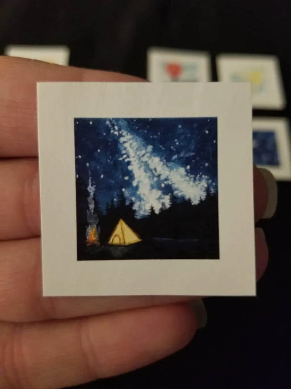Miniature Camping Galaxy Night Tiny Art PRINT - Tiny 1-Inch Mini Wall Decor