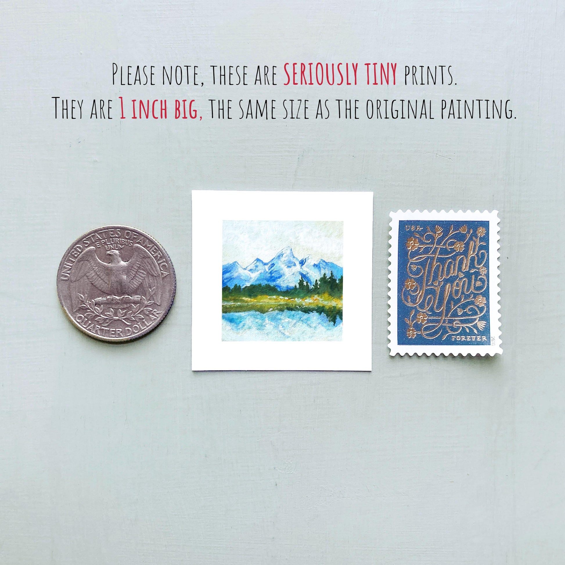 Mini 1" WY Grand Tetons National Park Wyoming USA Roadtrip Tiny Gouache Art PRINT