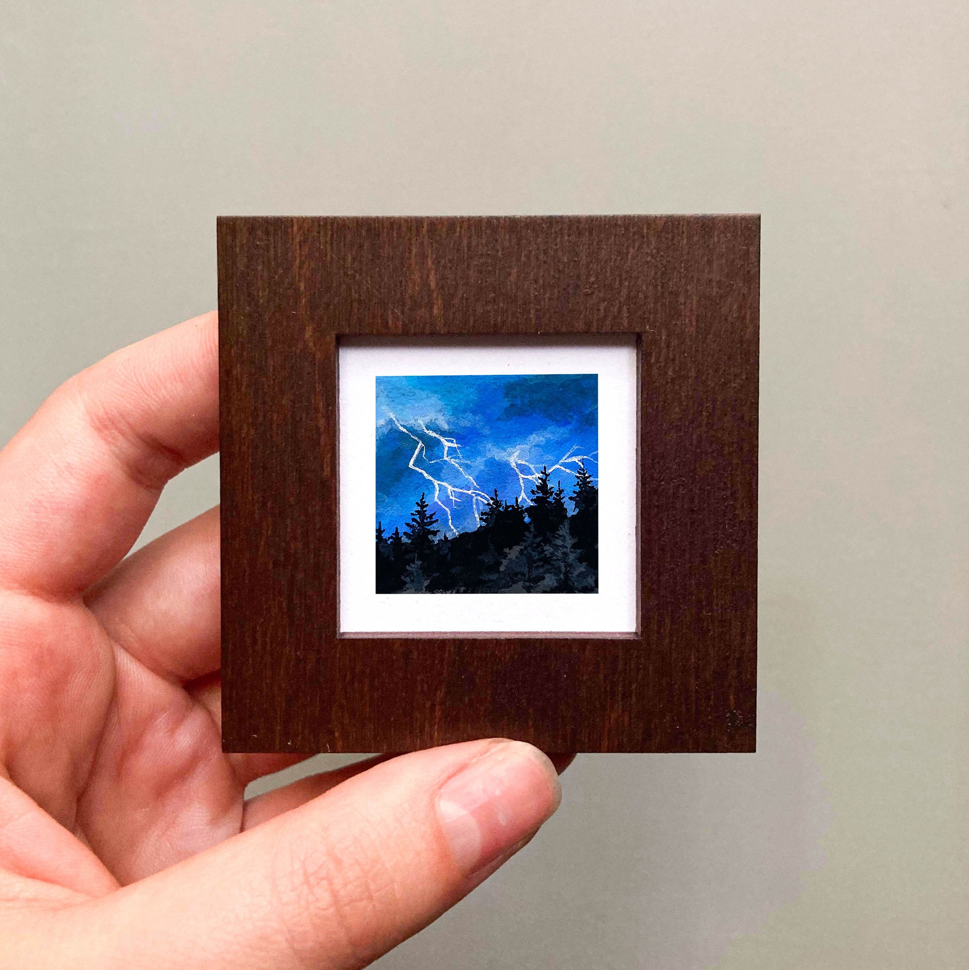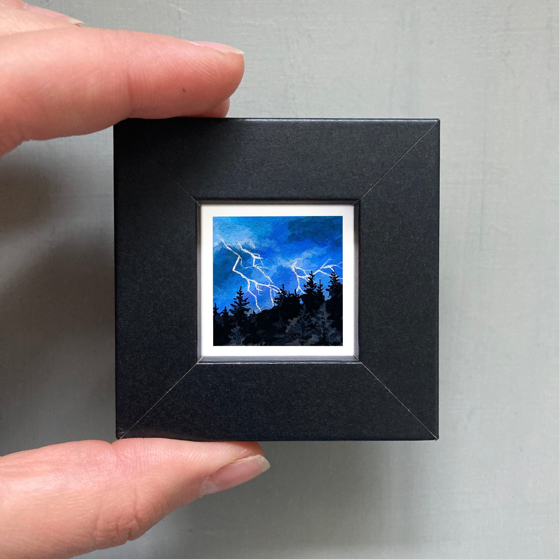 Miniature Lightening Storm Forest Art PRINT - Tiny 1-Inch Mini Wall Decor