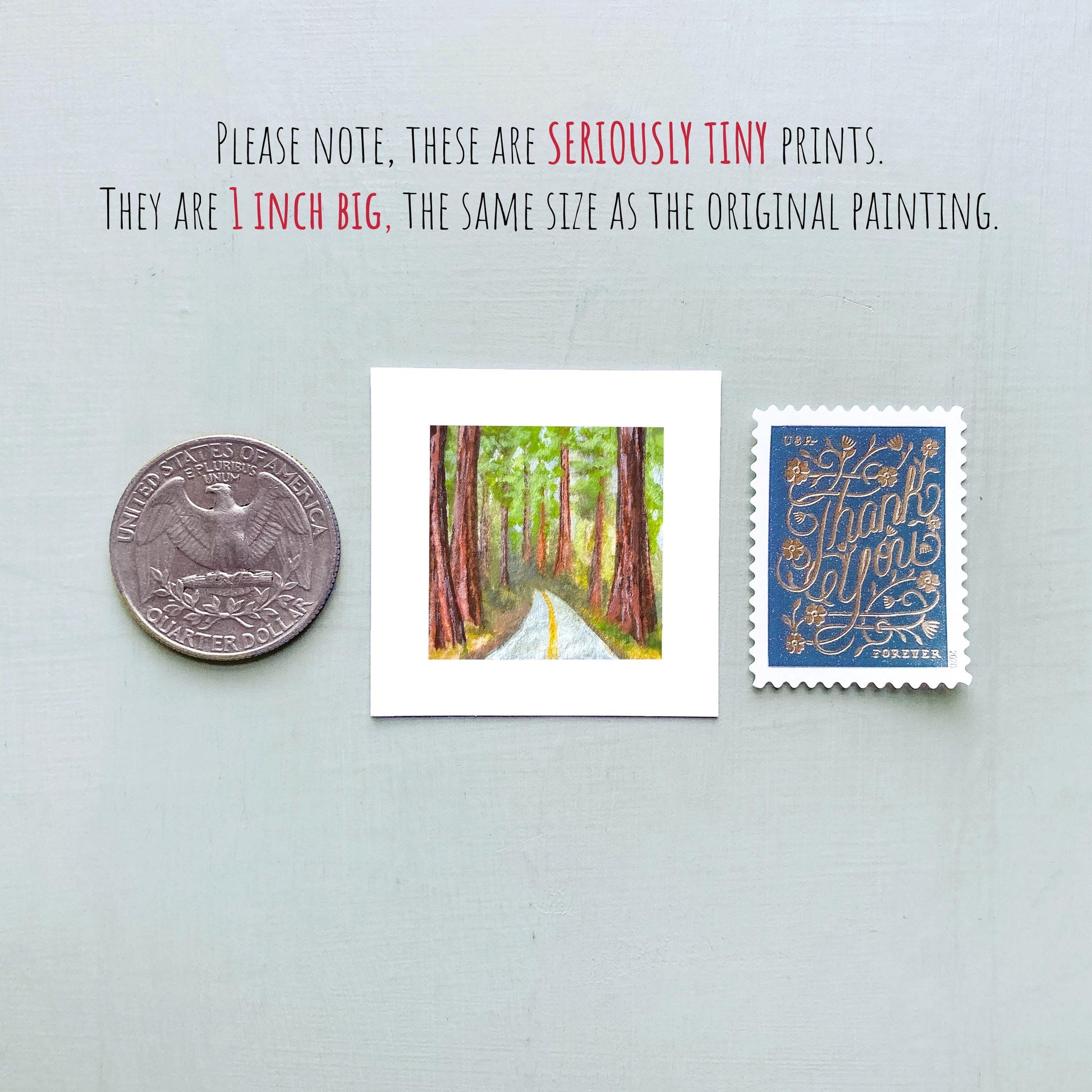 Mini 1" CA Redwoods National Park California USA Roadtrip Tiny Gouache Art PRINT