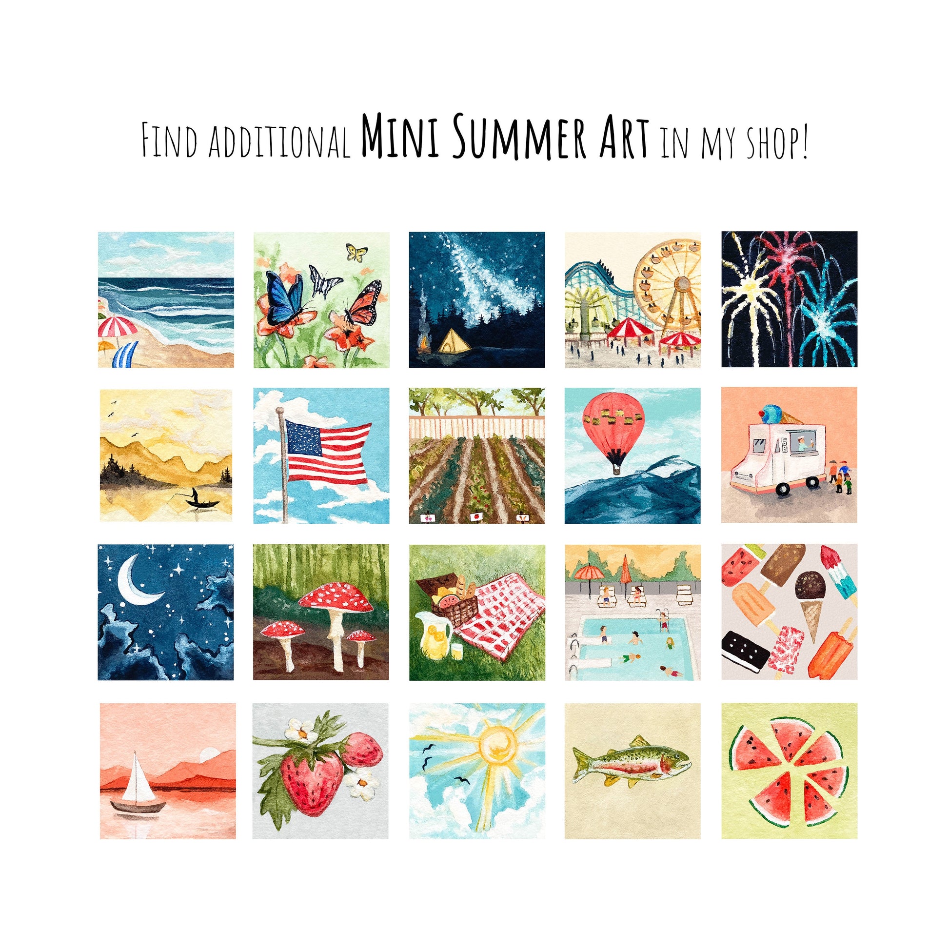 This print showcases an endearingly tiny seasonal painting, delicately crafted with watercolors over the course of a year long series comprising nearly 100 seasonal designs. These prints are a true-to-life reflection of the original paintings, complete with the same tiny size.
