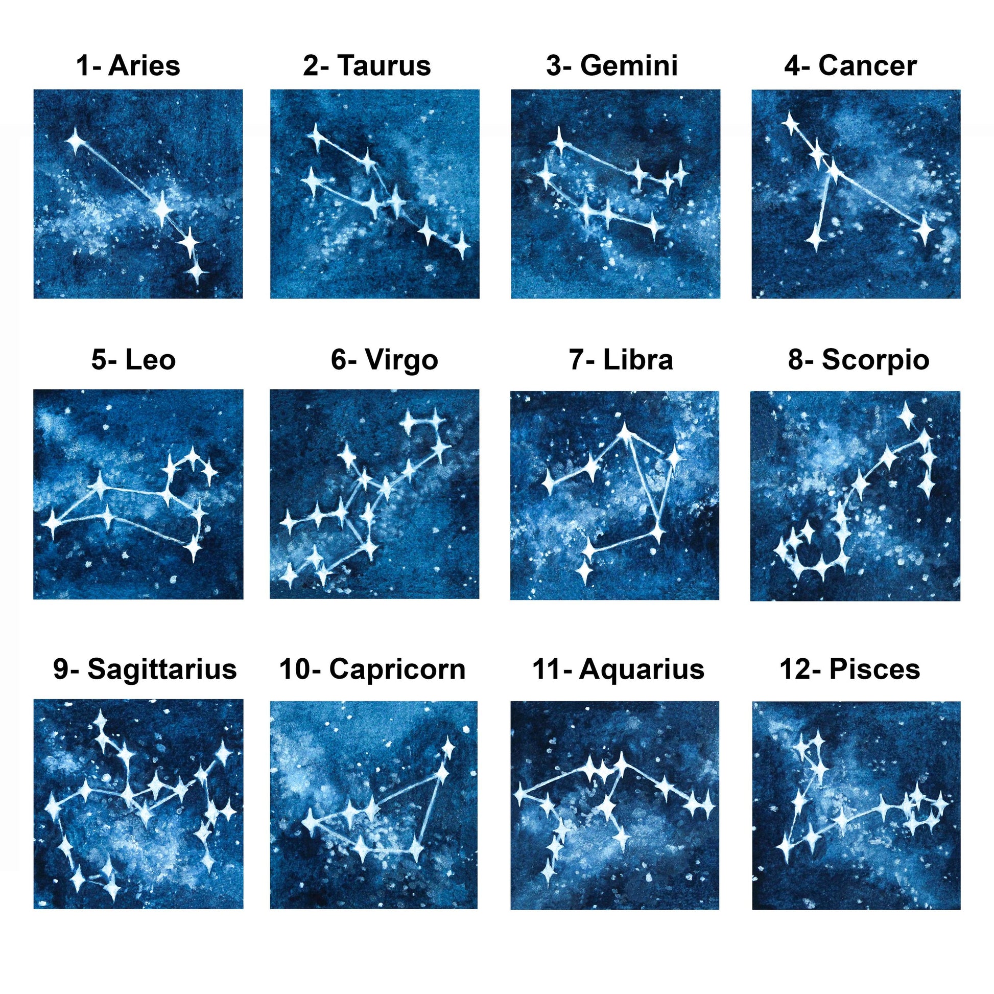 Mini 1" Zodiac Constellations Gouache Art PRINTS